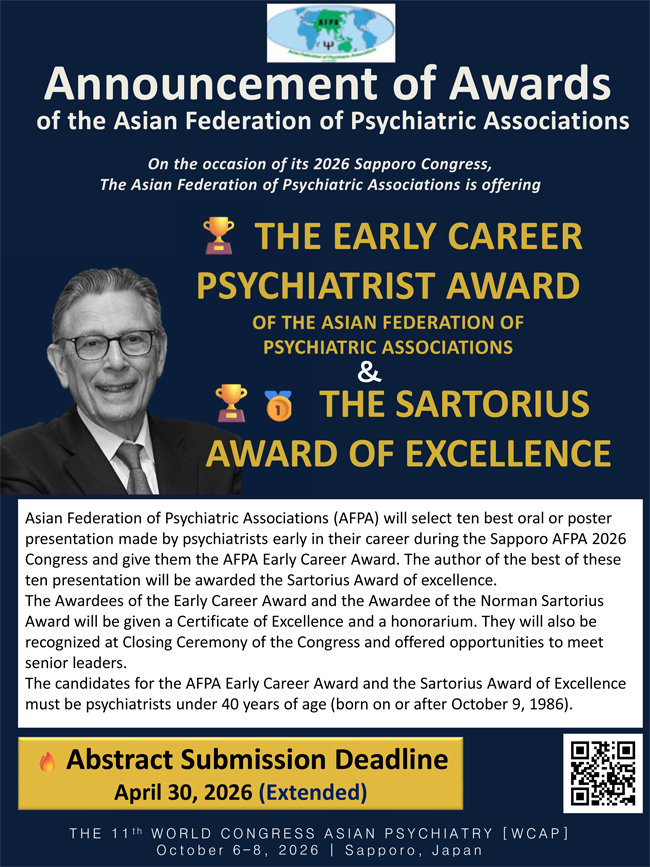 We are pleased to announce the AFPA Early Career Award. If you are under 40 years of age (as of October 2026) and are eager to submit an abstract as the first author, you are welcome to apply for this award, regardless of your country of residence.